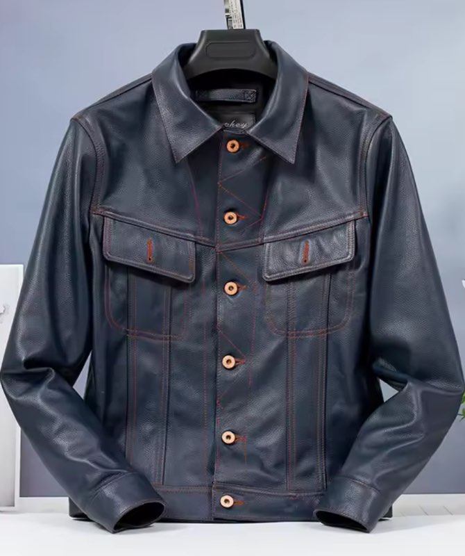 Blár leðurjakki