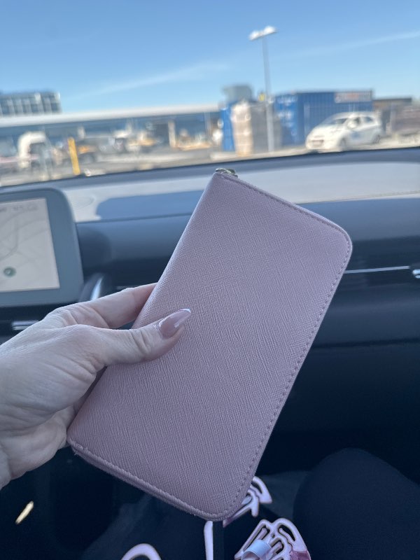 Bleikt veski með snúrum