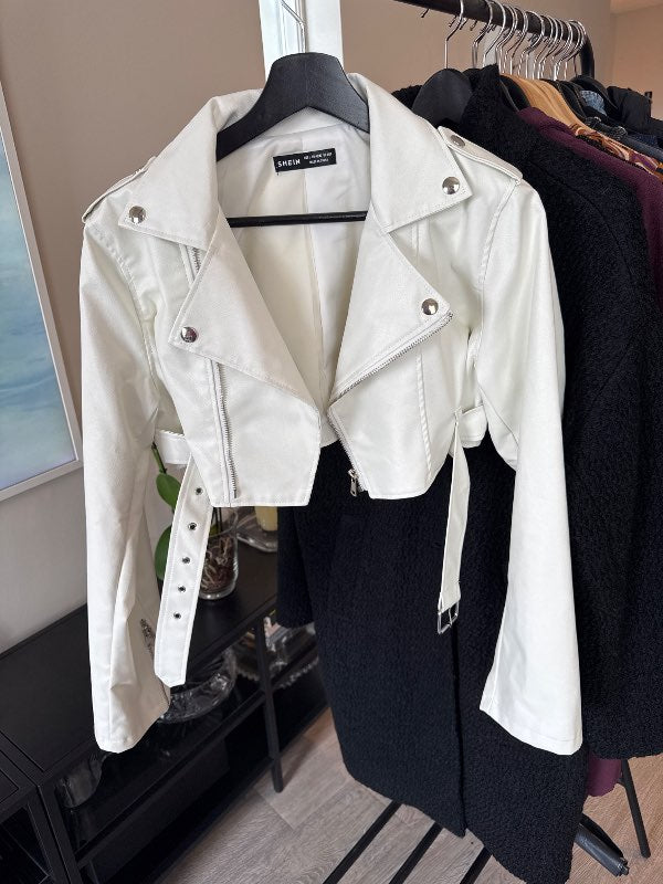 Cropper hvítur pleðurjakki