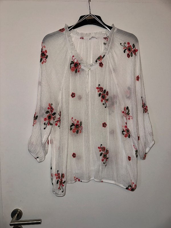 Hvít blússa með blómum