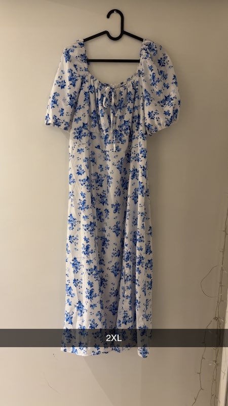 Hvítur kjóll - blá blóm