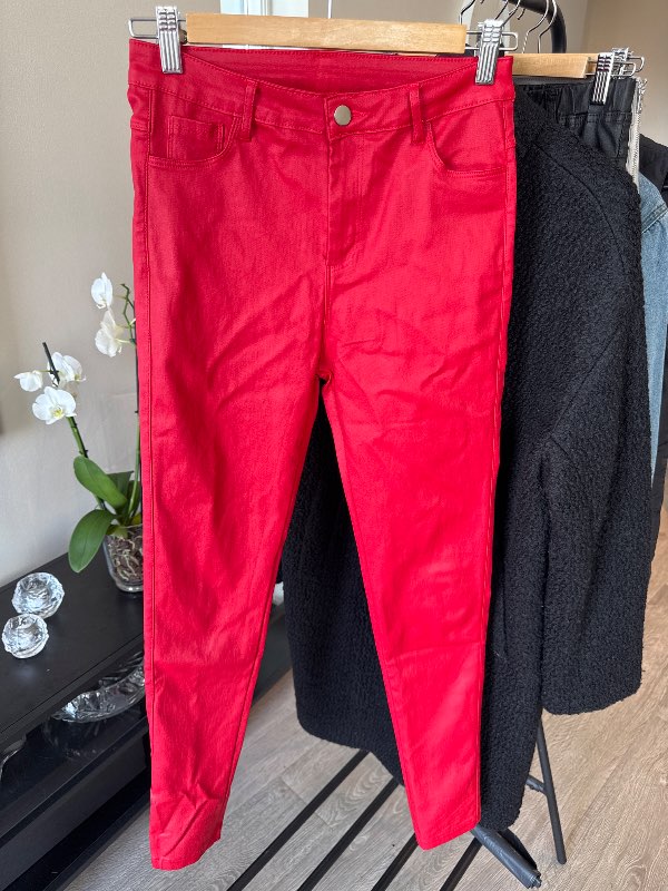 Pleður buxur rauðar stretchy