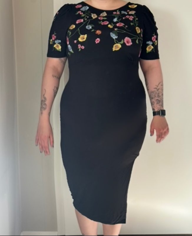 Svartur kjóll með blómum